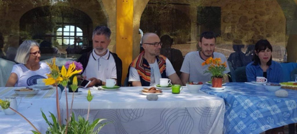 ‘Having a teacher like Tim, the presence of Lambie and her beautiful messages through art presentations, being with 23 brothers all day is incredibly powerful. In the Course I’ve often read about God’s gifts, well the whole retreat is a gift. Seeing all the brothers transformed from darkness in light and feeling grateful for all the gifts. It was not only the beautiful and clear sessions of Tim, but also experiencing the first 50 lesson reviews each morning, the vespers in the evening, the blue sky meditations, the energetic meditation, the day of fasting-discovering how much you care about your body, the silent day hearing yourself talking and talking inside, the collaboration in managing the house, the day off going to the sea to swim, the prayer-tent, the lunch and dinner time eating and being together. Every moment is a complete experience of love’